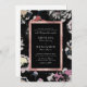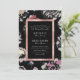 Audaz marco de rosa dorado rodeado de flores clásicas clásicas y modernas, en tonos burdeos, rosa, azul, gris y negro, elegante y elegante. Ideal para bodas clásicos modernos en otoño o invierno. Vea todas las piezas coincidentes de la colección.
