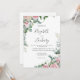 Esta elegante y moderna invitación a la boda se caracteriza por sus ramos florales de acuarela rosa y su vegetación eucalíptica en dos rincones con un fondo blanco. El texto del personalizable combina la escritura a mano capilar gris carbón, copperplate y tipografías cursivas. El lado inverso es blanco sólido.