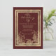 Invitación Boda floral con brillo dorado y burgundy glamurosa