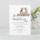 Si tú y tu prometido aman los dinosaurios, aquí hay una divertida invitación de boda con tema de dinosaurios con novios dinosaurios parados en un colorido prado de flores silvestres de acuarela. Fácil de personalizar con los nombres de los novios, fecha de la boda y todos los detalles. Ilustraciones divertidas de dinosaurios novios T-Rex con tipografía caprichosa moderna. Arte original único de la artista Catherine Sweetman