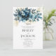 Esta invitación de boda con tema botánico presenta un elegante ramo floral blanco, índigo, verde azulado y dorado que rodea los detalles de su boda. Dé a sus invitados una excelente primera impresión de la boda que se avecina, esta tarjeta será una adición fantástica a sus eventos de boda.
