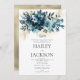 Invitación Boda floral de acuarela índigo oro
