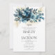 Esta invitación de boda con tema botánico presenta un elegante ramo floral blanco, índigo, verde azulado y dorado que rodea los detalles de su boda. Dé a sus invitados una excelente primera impresión de la boda que se avecina, esta tarjeta será una adición fantástica a sus eventos de boda.