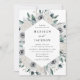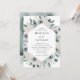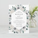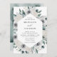 Elegantes invitaciones florales a bodas con detalles bodas enmarcados por anémonas de acuarela blanca, rosas de marfil y hojas verdes de salvia oscura. Las invitaciones de boda blancas anémicas se invitan a revertir para mostrar un hermoso fondo de color verde sabio oscuro.