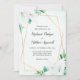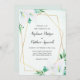 Estas invitaciones a bodas acuarelas cuentan con elegantes flores de lirio blanco y hojas de follaje verde con un marco geométrico falso de oro. También está disponible la suite de papelería correspondiente. Visite nuestra tienda o vea nuestras páginas de colección para ver toda la gama de productos que puede personalizar para su boda