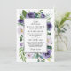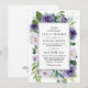 Las invitaciones a la boda floral de color gris morado con flores color de agua en tonos violeta. El cuadro de texto incluye un cuadro de texto moderno impreso en plata o gris. Vea la colección coincidente en esta página para ver los productos de coordinación.