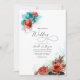 Rosas turquesa y coralina y invitaciones nupciales de verano del follaje tropical con acentos de purpurina rosa de oro diseñado para ser rápida y fácilmente adaptado a sus especificaciones del evento.