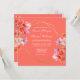 Una forma bonita y moderna de invitar a los huéspedes a su boda. En una carta cuadrada, la decoración se caracteriza por una agradable disposición floral en tonos corales, rosa pálido y fucsia suave. Los detalles de su boda de personalizable están rodeados por un marco geométrico de imitación de Relieve metalizado dorado. Todo esto sobre un bonito fondo de coral. La parte trasera de la tarjeta tiene la misma disposición floral sobre el coral. Los colores de fondo se pueden cambiar según se desee. Por favor, consulte la suite boda completa para otros productos que llevan este diseño. Si tiene alguna pregunta sobre el diseño o desea ver este diseño en otro producto, por favor, no dude en ponerse en contacto conmigo en jschmidtdesignworks@gmail.com. Diseño © Judith Schmidt.