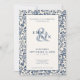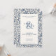 Celebre su día especial con este elegante diseño boda floral, que presenta una combinación clásica de colores azul y crema floral. El intrincado borde floral añade un toque de sofisticación atemporal, ideal para las parejas que buscan evocar una estética tradicional y elegante para su gran día. Ideal para bodas en el jardín o ceremonias de temática vintage, este diseño marca la pauta para una celebración romántica e íntima.