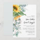 Elegante y rústico girasol acuático y eucalipto con tipografía clásica y guion en el centro y su fecha boda. Coincidiendo con los elementos de esta colección.