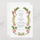 Preciosa invitación de boda tropical pintada a mano con acuarela enmarcada por un delicado arreglo de exuberante vegetación tropical colorida, flores y colibrí que le da un aspecto único hecho a medida. Perfecta para cualquier boda tropical, de verano, jardín o destino