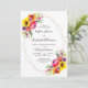Este hermoso, ramos florales brillantes elegantes de las características del diseño con las flores en sombras del coral, naranja, rosa, rojo, amarillo y púrpura, junto con un marco geométrico de cobre de moda. Dentro del marco es el texto adaptable para su acontecimiento especial en tipografía popular. La parte posterior de la tarjeta ofrece un fondo coralino con las telas a rayas de cobre elegantes. Usted puede personalizar este artículo cambiando el texto en la plantilla.