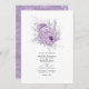 Invitación de boda floral personalizable con detalles de evento de lavanda púrpura y brillo plateado falso