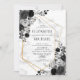 Invitación Boda floral de mármol geométrico de oro blanco neg