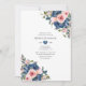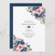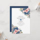 Invitación de ducha de pareja de moda rosa blush y azul marino floral personalizable a los detalles de su evento.