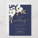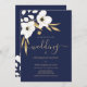 Invitación Boda floral de oro blanco azul marino de lujo