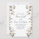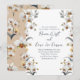 Esta elegante invitación a la boda presenta un sofisticado diseño con delicadas orquídeas blancas y centros dorados dispuestos alrededor de un fondo blanco en el frente y un cálido fondo beige en la parte posterior, creando un romántico borde botánico que enmarca los detalles de la ceremonia. La tipografía combina el serif formal para los detalles del evento con un elegante tipo de letra para los nombres de la pareja, mientras que el follaje gris-verde suave complementa los elementos florales, resultando en una estética atemporal y refinada que sugiere una celebración íntima y sofisticada.
