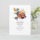 Invitación a una boda floral de color azul marino. Ideal para una boda en el jardín. El código QR al revés se dirige al sitio de su boda, donde la gente puede aprender más y ver más.