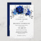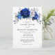 Elegante tema de boda de color azul real blanco plateado Invitación con elegante ramo de azul real, marina, plata, flor rosa de color blanco puro y hojas de eucalipto verde salado. Comuníquese conmigo para obtener ayuda sobre la personalización o si necesita cualquier otro producto con este diseño.