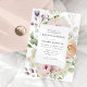 Elegantes invitaciones florales a bodas con detalles bodas enmarcados por flores acuarelas y follaje en tonos melocotón claro, marfil, rosa rubor, morado, amarillo y verde. Personalice la invitación a la boda floral de primavera con sus nombres y detalles de boda a continuación. La impresionante invitación floral es perfecta para bodas de primavera y verano en el jardín.