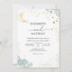 Abran un mágico cielo nocturno con este encantador diseño celeste. Con una mezcla caprichosa de elementos estrellados y delicados acentos florales en tonos suaves y dorados, se crea un tono soñador y romántico. Ideal para una celebración etérea.
