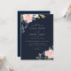 Invitación Boda floral Deep Navy Blue & Rubor