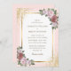 Invite a sus invitados a su fiesta de bodas rosa y lujosa, con estas elegantes invitaciones florales de bodas con flores rosa y vegetación que enmarcan los detalles bodas dentro de un marco dorado adornado con confeti dorado. Elementos coincidentes disponibles.