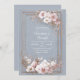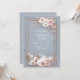 Captura el encanto del romance eterno con esta invitación a la boda floral azul y Rubor. Con un fondo azul verdoso y polvoriento salpicado de una textura suave y moteada, este elegante diseño está adornado con delicadas flores de acuarela de color rosa, crema y taupe mudo. Los acentos florales están cuidadosamente situados en las esquinas superior e inferior, enmarcando con gusto los detalles de tu evento con una simetría elegante. Un refinado borde doble en tonos dorados subió añade un acabado moderno y clásico a la disposición general. Esta invitación es perfecta para bodas en cualquier época del año, especialmente primavera o otoño, y complementa temas como el jardín romántico, la elegancia vintage o la moda rústica. Ideal no sólo para invitaciones a bodas, sino también para invitaciones de duchas de novias, renovaciones de votos o invitaciones a fiestas de compromiso. Póngalo en pareja con tarjetas RSVP, notas de agradecimiento o menús para completar su paquete de papel.