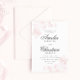 Esta invitación de boda vintage floral rosa pálido cuenta con botánicos de rosa románticos, nombres en letra cursiva y tipografía clásica. Las flores suaves hacen que esta invitación sea femenina pero no demasiado. Perfecta para una boda inspirada en el vintage, una boda en el jardín al aire libre o una boda clásica y atemporal. Haga clic en el botón Editar para personalizar este diseño.