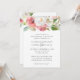 Cuenta con un diseño floral de jardín elegante en acuarela en tonos de rosados, rosa y blanco con vegetación y acentos turquesa. La parte trasera de la invitación está enmarcada en flores de jardín a juego. Diseño © Rosalind Moore, Cherry Lane Designs.