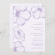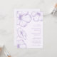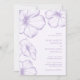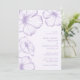 Invitación nupcial moderna con un diseño floral sencillo pero elegante con grandes flores en la parte superior e izquierda. Los detalles del evento están en el lado derecho.