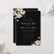 Elegante y negra invitación a la boda floral. Esta romántica y odiosa invitación a la boda oscura presenta una hermosa acuarela pintada a mano de color rosa rubor y una elegante vegetación. Encontrar elementos coincidentes en la colección Boda Elegant Dark.