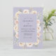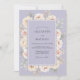 Un suave fondo de lila acuna una delicada cascada de flores blancas cremosas y rosadas. Un verde suave se entrelaza entre los pétalos, evocando una atmósfera romántica y etérea. Este diseño es perfecto para una celebración serena y caprichosa.