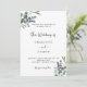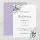 Un elegante fondo blanco en la parte delantera. Decorada con eucalipto y flores de lavanda. Personalice y agregue sus nombres y detalles. Fondo de color lavanda.