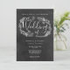 Chalkboard invitación a la boda de guirnaldas florales a mano con delicados ilustraciones de follaje de hojas botánicas con un guion blanco de moda en un fondo de pizarra. Personaliza tu información especial sobre el día de tu boda. Diseñado por Thisisnotme©