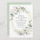 Un diseño de tema de boda con vegetación con flores pintadas con acuarela blanca, un marco geométrico y vegetación. Un diseño perfecto para tu boda de verano y primavera. Puedes personalizar el texto y el detalle del color en esta plantilla de invitación de boda.