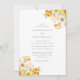 Elegante invitación de boda floral con un ramo de flores amarillas y melocotones. Diseño de tarjeta perfecto para invitar a sus invitados a su fiesta de bodas de color amarillo y melocotón.