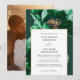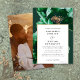 Esta elegante invitación de boda floral en verde esmeralda y dorado se puede personalizar con su información en tipografía moderna y una foto especial en el reverso. Diseñado por Thisisnotme©