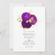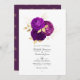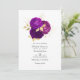 Personalizable de invitación de boda floral morado y dorado a los detalles de tu evento. Ideal para cualquier tema o boda en el jardín. El código QR al revés se dirige al sitio de su boda, donde la gente puede aprender más y ver más.