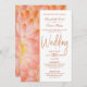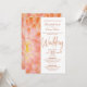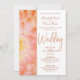 Una elegante y moderna invitación a una boda floral naranja diseñada para las parejas que planean intercambiar votos en un lugar y celebrar con amigos y seres queridos en otro la cena, el baile y las tostadas.