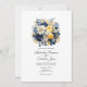 Personalizable de invitación a la boda floral azul marino, blanca y dorada a los detalles de tu evento.