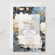 Invitación a la boda floral blanca y negra con acentos de oro. Ideal para una boda en el jardín.
