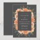 Este diseño presenta exuberantes flores de melocotón y follaje verde intenso. La rica paleta de colores evoca un sentimiento de romance opulento y encanto otoñal. Perfecto para una celebración sofisticada y cálida.