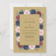 Las rosas profundas de color azul marino y burgundy anclan una frontera exuberante contra un fondo dorado llamativo. Los acentos de rosa suave y vegetación delicada añaden un toque de romance a la paleta sombría. Esta disposición botánica de acuarela evoca un sentido de elegancia formal, perfecta para un evento sofisticado de invierno o otoño.
