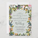 Esta invitación a la boda floral pintada es perfecta para un boda moderno. El diseño es elegante y romántico, con hermosas flores de acrílico pintadas en rosa y blanco, con brotes de color violeta, azul, naranja y amarillo.