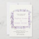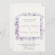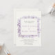 Presentamos nuestra hermosa invitación a la boda con delicadas flores moradas en un estilo rústico y campestre. Los nombres de la pareja están elegantemente rodeados por el diseño floral de la bonito, lo que lo convierte en una elección perfecta para las parejas que aman la floricultura y quieren darle un toque de encanto rústico a su día especial. El sencillo y moderno tipo de letra negro utilizado para el resto de la invitación crea un hermoso contraste con el intrincado tipo de letra morado utilizado para los nombres de la pareja, haciendo que se destaquen realmente. Esta invitación es una excelente opción para las parejas que buscan una temática boda moderna y romántica, incluyendo Bodas de primavera y verano o Bodas botánicos modernos. Esta invitación, elaborada con materiales de alta calidad, impresiona a sus huéspedes y marca la pauta para su gran día. El bonito diseño floral y el original color púrpura hacen que esta invitación se destaque del resto y crean una hermosa primera impresión para sus huéspedes. Si buscas una invitación de boda moderna y clásica, con un toque de encanto rústico, esta invitación es la elección perfecta para ti.