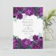 Invitación a una boda floral de color morado y verde acuarela. Ideal para cualquier tema o boda en el jardín. El código QR al revés se dirige al sitio de su boda, donde la gente puede aprender más y ver más.