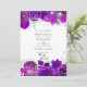 Invitación a la boda floral de color púrpura real y acuarela plateado. Ideal para cualquier tema o boda en el jardín. El código QR al revés se dirige al sitio de su boda, donde la gente puede aprender más y ver más.