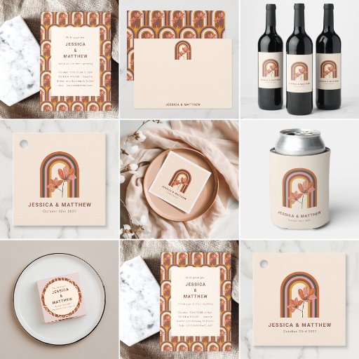 Retro Rainbow Floral Arch Wedding StationeryDiseñado por Opal Ellery