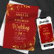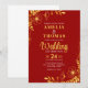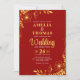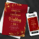 Celebre su día especial con esta elegante invitación de boda que presenta un clásico fondo rojo carmesí y hermosos detalles florales dorados. El diseño intrincado añade un toque de sofisticación y romance, mientras que la redacción simple pero elegante garantiza que su invitación sea elegante e informativa. Personalice este diseño con sus nombres, fecha de la boda e información del lugar para una invitación verdaderamente única y memorable.